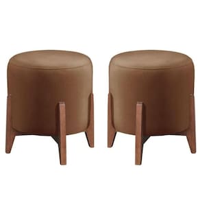 Kit 2 Puff Decorativo Para Sala Redondo Luxo Dubai Suede Cor:capuccino