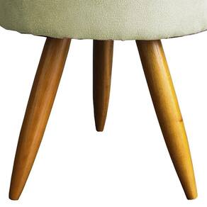Produzido com estrutura em madeira de eucalipto e pés palito na cor castanho, o Puff suporta até 90 Kg, oferecendo durabilidade e um acabamento refinado.
