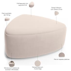 Feito para quem ama versatilidade com estilo, esse puff triângulo é o aliado perfeito para criar um cantinho de conversa na sala, com um toque moderno; apoiar os pés na cama ou servir de banco improvisado no quarto e, ainda, surpreender na recepção de um escritório descolado ou no home office. Com linhas que equilibram sofisticação e aconchego, o Puff Orgânico Trizza é a peça que faltava para seu espaço respirar design funcional - sem abrir mão do conforto. Onde você vai colocá-lo?