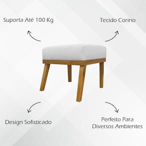 Estrutura em madeira de eucalipto de reflorestamento, garantindo resistência e durabilidade. Revestido em material sofisticado, que facilita a limpeza e traz modernidade ao és de madeira, agregando estabilidade e um design contemporâneo. Suporta até 100 kg, oferecendo e funcionalidade.