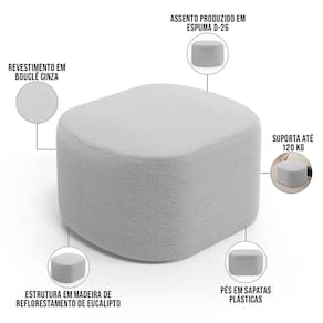 Kit 2 Puffs Decorativos Orgânico para Living Quarto 70cm Doha W01 Bouclê Cinza - Lyam Decor