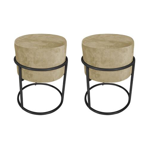 Tipo: Puff Redondo Modelo: Decorativo Cor Tecido: Bege Tecido: Veludo Cor da Base: Preto Base em Ferro