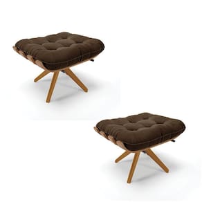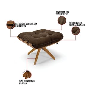 Kit 2 Puffs Giratório Suede Base Madeira D`rossi Marrom