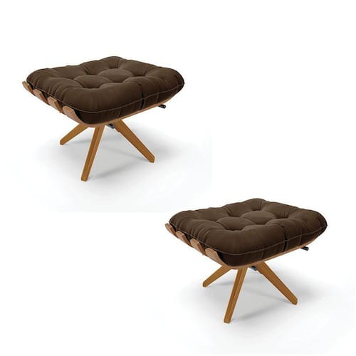 Kit 02 Puffs Giratório Costela Suede Base Madeira Ma25 - D'rossi Cor Marrom