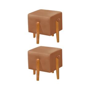 Kit 2 Puffs Quadrado Pés em Madeira Maciça Fiji Veludo Terracota - Laranja