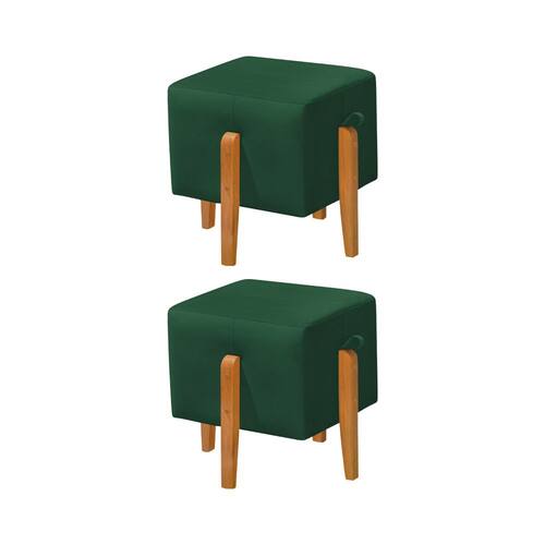 Kit 2 Puffs Quadrado Pés em Madeira Maciça Fiji Veludo Verde
