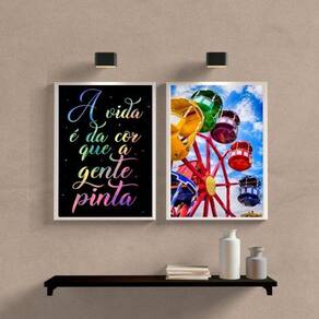 Kit 2 quadros a vida é da cor que a gente pinta- roda gigante 24x18cm - com vidro Moldura: madeira preta Informações do produto tire todas as suas dúvidas no descritivo abaixo: decoração para quarto, sala, cozinha, escritório, área gourmet e muito mais. Chega de paredes vazias medidas - cada peça tem 24x18cm a5 . Material do papel - papel fotográfico brilhante de altíssima resolução acabamento - todos os quadros são acompanhados de vidro para proteção da imagem. - moldura em madeira maciça na cor preta ou branca conforme produto escolhido e pendurador . - os quadros são embalados de forma segura com plástico bolha com camada dupla de acordo com o tamanho dos quadros. - de 3 meses. Meu quadro chegou. Como posso fixá-lo Você precisa apenas de um martelo e um prego, pois os quadros já vão acompanhados de penduradores. Esta é a forma mais indicada. Como posso limpar meu quadro A limpeza é feita como um móvel comum da sua casa. Apenas um pano seco ou espanador são suficientes para tal Marca: Não Informado