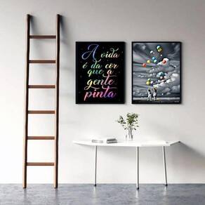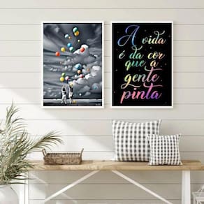 Kit 2 quadros a vida tem a cor que a gente pinta 45x34cm Moldura: madeira branca Informações do produto tire todas as suas dúvidas no descritivo abaixo: decoração para quarto, sala, cozinha, escritório, área gourmet e muito mais. Chega de paredes vazias. Medidas - cada peça tem 45x34cm a3 . Material do papel - papel fotográfico brilhante de altíssima resolução acabamento - todos os quadros são acompanhados de uma película de acetato para proteção da imagem. - os quadros são embalados de forma segura com plástico bolha com camada dupla de acordo com o tamanho dos quadros. Garantia - garantia de 3 meses. Meu quadro chegou. Como posso fixá-lo Você precisa apenas de um martelo e um prego, pois os quadros já vão acompanhados de penduradores. Esta é a forma mais indicada. Caso prefira, você pode utilizar uma fita dupla face neste caso, sugerimos de alta qualidade para evitar que descole e seu quadro caia . Como posso limpar meu quadro A limpeza é feita como um móvel comum da sua casa. Apenas um pano seco ou espanador são suficientes para tal