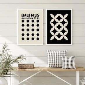 Kit 2 quadros abstratos bauhaus - preto e bege 33x24cm - com vidro Moldura: madeira branca Informações do produto tire todas as suas dúvidas no descritivo abaixo: decoração para quarto, sala, cozinha, escritório, área gourmet e muito mais. Chega de paredes vazias medidas - cada peça tem 33x24cm a4 . Material do papel - papel fotográfico brilhante de altíssima resolução acabamento - todos os quadros são acompanhados de vidro para proteção da imagem. - moldura em madeira maciça na cor preta ou branca conforme produto escolhido e pendurador . - os quadros são embalados de forma segura com plástico bolha com camada dupla de acordo com o tamanho dos quadros. Garantia - garantia de 3 meses. Meu quadro chegou. Como posso fixá-lo Você precisa apenas de um martelo e um prego, pois os quadros já vão acompanhados de penduradores. Esta é a forma mais indicada. Como posso limpar meu quadro A limpeza é feita como um móvel comum da sua casa. Apenas um pano seco ou espanador são suficientes para tal