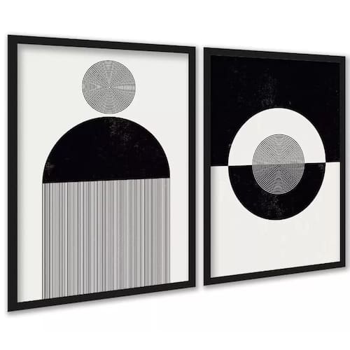 Kit 2 quadros abstratos formas e linhas preto e branco 45x34cm Cor: moldura preta Informações do produto tire todas as suas dúvidas no descritivo abaixo: decoração para quarto, sala, cozinha, escritório, área gourmet e muito mais. Chega de paredes vazias. Medidas - cada peça tem 45x34cm a3 . Material do papel - papel fotográfico brilhante de altíssima resolução acabamento - todos os quadros são acompanhados de uma película de acetato para proteção da imagem. - os quadros são embalados de forma segura com plástico bolha com camada dupla de acordo com o tamanho dos quadros. - de 3 meses. Meu quadro chegou. Como posso fixá-lo Você precisa apenas de um martelo e um prego, pois os quadros já vão acompanhados de penduradores. Esta é a forma mais indicada. Caso prefira, você pode utilizar uma fita dupla face neste caso, sugerimos de alta qualidade para evitar que descole e seu quadro caia . Como posso limpar meu quadro A limpeza é feita como um móvel comum da sua casa. Apenas um pano seco ou espanador são suficientes para tal