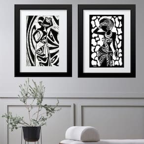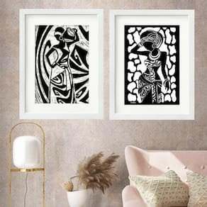 Kit 2 quadros africanas preto e branco - 60x48cm Moldura: madeira branca Informações do produto tire todas as suas dúvidas no descritivo abaixo: decoração para quarto, sala, cozinha, escritório, área gourmet e muito mais. Chega de paredes vazias medidas - cada peça tem 60x48cm . Material do papel - papel fotográfico brilhante de altíssima resolução acabamento - todos os quadros são acompanhados de vidro para proteção da imagem. - moldura em madeira maciça na cor preta ou branca conforme produto escolhido e pendurador. - paspatur branco com 7cm de largura - os quadros são embalados de forma segura com plástico bolha com camada dupla de acordo com o tamanho dos quadros. Garantia - garantia de 3 meses. Meu quadro chegou. Como posso fixá-lo Você precisa apenas de um martelo e um prego, pois os quadros já vão acompanhados de penduradores. Esta é a forma mais indicada. Como posso limpar meu quadro A limpeza é feita como um móvel comum da sua casa. Apenas um pano seco ou espanador são suficientes para tal