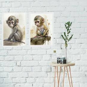 Kit 2 quadros aquarela macaquinho 33x24cm Moldura: madeira branca Informações do produto tire todas as suas dúvidas no descritivo abaixo: decoração para quarto, sala, cozinha, escritório, área gourmet e muito mais. Chega de paredes vazias medidas - cada peça tem 33x24cm a4 . Material do papel - papel fotográfico brilhante de altíssima resolução acabamento - todos os quadros são acompanhados de uma película de acetato para proteção da imagem. - os quadros são embalados de forma segura com plástico bolha com camada dupla de acordo com o tamanho dos quadros. Garantia - garantia de 3 meses. Meu quadro chegou. Como posso fixá-lo Você precisa apenas de um martelo e um prego, pois os quadros já vão acompanhados de penduradores. Esta é a forma mais indicada. Caso prefira, você pode utilizar uma fita dupla face neste caso, sugerimos de alta qualidade para evitar que descole e seu quadro caia . Como posso limpar meu quadro A limpeza é feita como um móvel comum da sua casa. Apenas um pano seco ou espanador são suficientes para tal