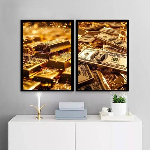 Kit 2 quadros arquétipo dinheiro fortuna 33x24cm - com vidro Cor: moldura preta Informações do produto tire todas as suas dúvidas no descritivo abaixo: decoração para quarto, sala, cozinha, escritório, área gourmet e muito mais. Chega de paredes vazias medidas - cada peça tem 33x24cm a4 . Material do papel - papel fotográfico brilhante de altíssima resolução acabamento - todos os quadros são acompanhados de vidro para proteção da imagem. - moldura em madeira maciça na cor preta ou branca conforme produto escolhido e pendurador . - os quadros são embalados de forma segura com plástico bolha com camada dupla de acordo com o tamanho dos quadros. Garantia - garantia de 3 meses. Meu quadro chegou. Como posso fixá-lo Você precisa apenas de um martelo e um prego, pois os quadros já vão acompanhados de penduradores. Esta é a forma mais indicada. Como posso limpar meu quadro A limpeza é feita como um móvel comum da sua casa. Apenas um pano seco ou espanador são suficientes para tal