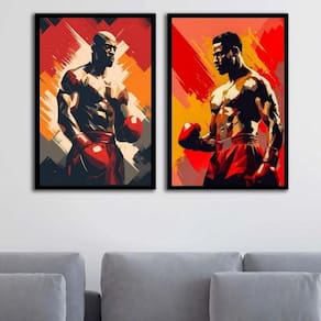 Kit 2 quadros artes boxe - lutadores 45x34cm - com vidro Cor: moldura branca Informações do produto tire todas as suas dúvidas no descritivo abaixo: decoração para quarto, sala, cozinha, escritório, área gourmet e muito mais. Chega de paredes vazias medidas - cada peça tem 45x34cm a3 . Material do papel - papel fotográfico brilhante de altíssima resolução acabamento - todos os quadros são acompanhados de vidro para proteção da imagem. - moldura em madeira maciça na cor preta ou branca conforme produto escolhido e pendurador . - os quadros são embalados de forma segura com plástico bolha com camada dupla de acordo com o tamanho dos quadros. Garantia - garantia de 3 meses. Meu quadro chegou. Como posso fixá-lo Você precisa apenas de um martelo e um prego, pois os quadros já vão acompanhados de penduradores. Esta é a forma mais indicada. Como posso limpar meu quadro A limpeza é feita como um móvel comum da sua casa. Apenas um pano seco ou espanador são suficientes para tal