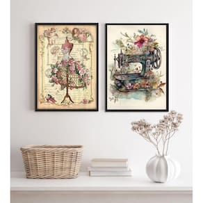 Kit 2 quadros atelier de costura- máquina com flores 24x18cm - com vidro Moldura: madeira preta Informações do produto tire todas as suas dúvidas no descritivo abaixo: decoração para quarto, sala, cozinha, escritório, área gourmet e muito mais. Chega de paredes vazias medidas - cada peça tem 24x18cm a5 . Material do papel - papel fotográfico brilhante de altíssima resolução acabamento - todos os quadros são acompanhados de vidro para proteção da imagem. - moldura em madeira maciça na cor preta ou branca conforme produto escolhido e pendurador . - os quadros são embalados de forma segura com plástico bolha com camada dupla de acordo com o tamanho dos quadros. Garantia - garantia de 3 meses. Meu quadro chegou. Como posso fixá-lo Você precisa apenas de um martelo e um prego, pois os quadros já vão acompanhados de penduradores. Esta é a forma mais indicada. Como posso limpar meu quadro A limpeza é feita como um móvel comum da sua casa. Apenas um pano seco ou espanador são suficientes para tal Ean: 7896600679462