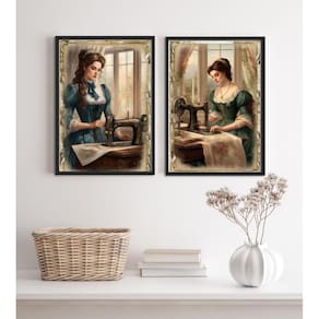 Kit 2 quadros atelier de costura vintage- costureiras 45x34cm - com vidro Moldura: madeira branca Informações do produto tire todas as suas dúvidas no descritivo abaixo: decoração para quarto, sala, cozinha, escritório, área gourmet e muito mais. Chega de paredes vazias medidas - cada peça tem 45x34cm a3 . Material do papel - papel fotográfico brilhante de altíssima resolução acabamento - todos os quadros são acompanhados de vidro para proteção da imagem. - moldura em madeira maciça na cor preta ou branca conforme produto escolhido e pendurador . - os quadros são embalados de forma segura com plástico bolha com camada dupla de acordo com o tamanho dos quadros. Garantia - garantia de 3 meses. Meu quadro chegou. Como posso fixá-lo Você precisa apenas de um martelo e um prego, pois os quadros já vão acompanhados de penduradores. Esta é a forma mais indicada. Como posso limpar meu quadro A limpeza é feita como um móvel comum da sua casa. Apenas um pano seco ou espanador são suficientes para tal Ean: 7891157673307