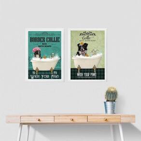 Kit 2 quadros banheiro cão border collie 33x24cm Moldura: madeira branca Informações do produto tire todas as suas dúvidas no descritivo abaixo: decoração para quarto, sala, cozinha, escritório, área gourmet e muito mais. Chega de paredes vazias medidas - cada peça tem 33x24cm a4 . Material do papel - papel fotográfico brilhante de altíssima resolução acabamento - todos os quadros são acompanhados de uma película de acetato para proteção da imagem. - os quadros são embalados de forma segura com plástico bolha com camada dupla de acordo com o tamanho dos quadros. - de 3 meses. Meu quadro chegou. Como posso fixá-lo Você precisa apenas de um martelo e um prego, pois os quadros já vão acompanhados de penduradores. Esta é a forma mais indicada. Caso prefira, você pode utilizar uma fita dupla face neste caso, sugerimos de alta qualidade para evitar que descole e seu quadro caia . Como posso limpar meu quadro A limpeza é feita como um móvel comum da sua casa. Apenas um pano seco ou espanador são suficientes para tal Marca: Não Informado