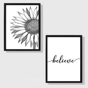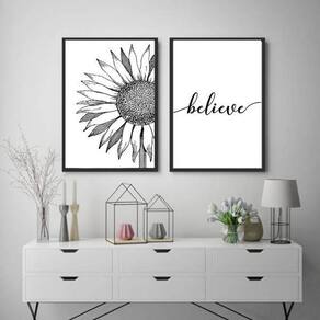Kit 2 Quadros Believe 24X18Cm Moldura: madeira branca Informações do produto Decoração para quarto, sala, cozinha, escritório, área gourmet e muito mais. Chega de paredes vazias. Medidas - cada peça tem 24x18cm a5 . Material do papel - papel fotográfico brilhante de altíssima resolução Acabamento - todos os quadros são acompanhados de uma película de acetato para proteção da imagem. - moldura em madeira maciça na cor branca e pendurador móvel que pode ser retirado facilmente caso deseje fixar com fita dupla face. - os quadros são embalados de forma segura com plástico bolha com camada dupla de acordo com o tamanho dos quadros. - de 3 meses Meu quadro chegou. Como posso fixá-lo: Você precisa apenas de um martelo e um prego, pois os quadros já vão acompanhados de penduradores. Esta é a forma mais indicada. Caso prefira, você pode utilizar uma fita dupla face neste caso, sugerimos de alta qualidade para evitar que descole e seu quadro caia . Como posso limpar meu quadro: A limpeza é feita como um móvel comum da sua casa. Apenas um pano seco ou espanador são suficientes para tal
