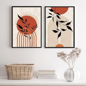 Compre agora o Kit 2 Quadros Decorativos Boho Sol Folhas Terracota 24X18Cm e transforme sua casa em um ambiente cheio de estilo e personalidade. Garantia de 3 meses. Ean: 7897948241687