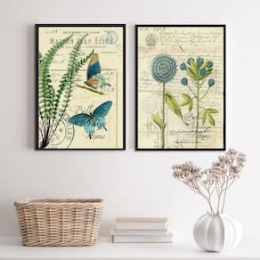 O Kit 2 Quadros Botânica Vintage Borboletas Flores Azuis é perfeito para adicionar um toque de charme e estilo à decoração do seu ambiente. Com medidas de 33x24cm A4 , esses quadros são ideais para decorar quartos, salas, cozinhas, escritórios, áreas gourmet e muito mais.