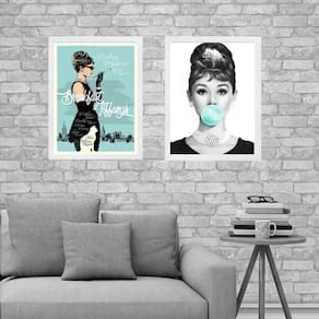 Kit 2 quadros breakfast at tiffanys- audrey 33x24cm - com vidro Moldura: madeira branca Informações do produto tire todas as suas dúvidas no descritivo abaixo: decoração para quarto, sala, cozinha, escritório, área gourmet e muito mais. Chega de paredes vazias medidas - cada peça tem 33x24cm a4 . Material do papel - papel fotográfico brilhante de altíssima resolução acabamento - todos os quadros são acompanhados de vidro para proteção da imagem. - moldura em madeira maciça na cor preta ou branca conforme produto escolhido e pendurador . - os quadros são embalados de forma segura com plástico bolha com camada dupla de acordo com o tamanho dos quadros. Garantia - garantia de 3 meses. Meu quadro chegou. Como posso fixá-lo Você precisa apenas de um martelo e um prego, pois os quadros já vão acompanhados de penduradores. Esta é a forma mais indicada. Como posso limpar meu quadro A limpeza é feita como um móvel comum da sua casa. Apenas um pano seco ou espanador são suficientes para tal