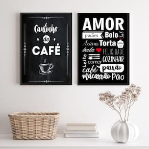 O Kit 2 Quadros Cantinho Do Café Amor Cozinha é perfeito para decorar o seu ambiente com estilo e charme. Com moldura de madeira branca, cada peça possui medida de 33x24cm A4 e é feita em papel fotográfico brilhante de altíssima resolução.