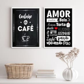 O Kit 2 Quadros Cantinho Do Café Amor Cozinha 33X24Cm - Vidro é perfeito para decorar diferentes ambientes, como quartos, salas, cozinhas, escritórios, áreas gourmet e muito mais. Com medidas de 33x24cm A4 , cada peça possui moldura de madeira preta que traz um toque de elegância e sofisticação.