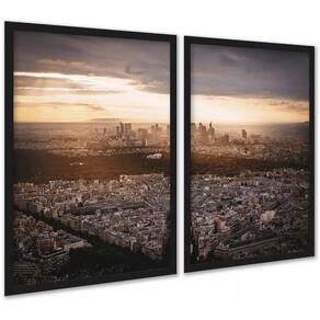 Kit 2 Quadros Cidade Ao Entardecer 24X18Cm - Com Vidro