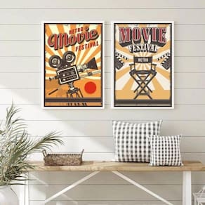 O Kit 2 Quadros Para Sala De Cinema Retrô 33X24Cm - Com Vidro é perfeito para decorar não apenas salas de cinema, mas também quartos, cozinhas, escritórios, áreas gourmet e muito mais.