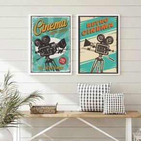 Principais características: - Kit com 2 quadros para decoração de sala de cinema retrô - Moldura de madeira preta - Medidas de cada quadro: 24x18cm A5 - Papel fotográfico brilhante de altíssima resolução - Película de acetato para proteção da imagem - Embalagem segura com plástico bolha de camada dupla - Acompanha penduradores para fácil instalação - Garantia de 3 meses