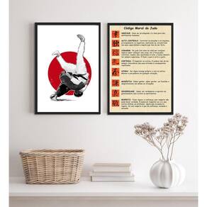 O Kit 2 Quadros Código Moral Do Judô 33X24Cm é perfeito para decorar o seu quarto, sala, cozinha, escritório, área gourmet e muito mais. Chega de paredes vazias! Cada peça mede 33x24cm A4 e possui uma moldura de madeira branca, que traz um toque de elegância e sofisticação para o ambiente.