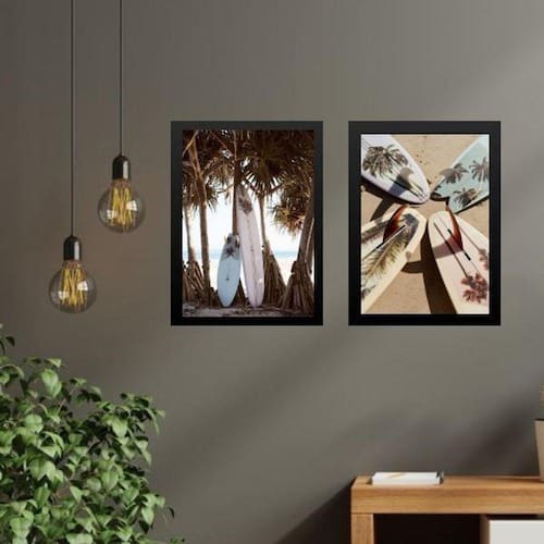 Kit 2 quadros coleção praia surf - pranchas 45x34cm Moldura: madeira branca Informações do produto tire todas as suas dúvidas no descritivo abaixo: decoração para quarto, sala, cozinha, escritório, área gourmet e muito mais. Chega de paredes vazias. Medidas - cada peça tem 45x34cm a3 . Material do papel - papel fotográfico brilhante de altíssima resolução acabamento - todos os quadros são acompanhados de uma película de acetato para proteção da imagem. - moldura em madeira maciça na cor preta ou branca conforme produto escolhido e pendurador móvel que pode ser retirado facilmente caso deseje fixar com fita dupla face. - os quadros são embalados de forma segura com plástico bolha com camada dupla de acordo com o tamanho dos quadros. Garantia - garantia de 3 meses. Meu quadro chegou. Como posso fixá-lo Você precisa apenas de um martelo e um prego, pois os quadros já vão acompanhados de penduradores. Esta é a forma mais indicada. Caso prefira, você pode utilizar uma fita dupla face neste caso, sugerimos de alta qualidade para evitar que descole e seu quadro caia . Como posso limpar meu quadro A limpeza é feita como um móvel comum da sua casa. Apenas um pano seco ou espanador são suficientes para tal