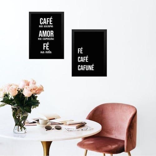 Kit 2 quadros cozinha café e fé 24x18cm