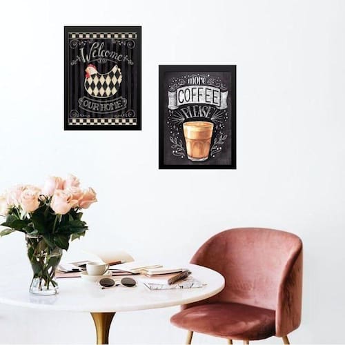 Kit 2 quadros cozinha country galinha café 33x24cm - com vidro Moldura: madeira branca Informações do produto tire todas as suas dúvidas no descritivo abaixo: decoração para quarto, sala, cozinha, escritório, área gourmet e muito mais. Chega de paredes vazias medidas - cada peça tem 33x24cm a4 . Material do papel - papel fotográfico brilhante de altíssima resolução acabamento - todos os quadros são acompanhados de vidro para proteção da imagem. - moldura em madeira maciça na cor preta ou branca conforme produto escolhido e pendurador . - os quadros são embalados de forma segura com plástico bolha com camada dupla de acordo com o tamanho dos quadros. Garantia - garantia de 3 meses. Meu quadro chegou. Como posso fixá-lo Você precisa apenas de um martelo e um prego, pois os quadros já vão acompanhados de penduradores. Esta é a forma mais indicada. Como posso limpar meu quadro A limpeza é feita como um móvel comum da sua casa. Apenas um pano seco ou espanador são suficientes para tal