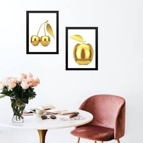Kit 2 quadros cozinha frutas douradas 45x34cm Cor: moldura branca Informações do produto tire todas as suas dúvidas no descritivo abaixo: decoração para quarto, sala, cozinha, escritório, área gourmet e muito mais. Chega de paredes vazias. Medidas - cada peça tem 45x34cm a3 . Material do papel - papel fotográfico brilhante de altíssima resolução acabamento - todos os quadros são acompanhados de uma película de acetato para proteção da imagem. - os quadros são embalados de forma segura com plástico bolha com camada dupla de acordo com o tamanho dos quadros. Garantia - garantia de 3 meses. Meu quadro chegou. Como posso fixá-lo Você precisa apenas de um martelo e um prego, pois os quadros já vão acompanhados de penduradores. Esta é a forma mais indicada. Caso prefira, você pode utilizar uma fita dupla face neste caso, sugerimos de alta qualidade para evitar que descole e seu quadro caia . Como posso limpar meu quadro A limpeza é feita como um móvel comum da sua casa. Apenas um pano seco ou espanador são suficientes para tal