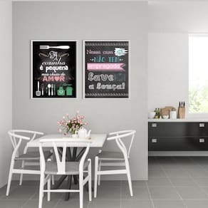 Kit 2 quadros cozinha pequena - lave a louça 33x24cm - com vidro Moldura: madeira preta Informações do produto tire todas as suas dúvidas no descritivo abaixo: decoração para quarto, sala, cozinha, escritório, área gourmet e muito mais. Chega de paredes vazias medidas - cada peça tem 33x24cm a4 . Material do papel - papel fotográfico brilhante de altíssima resolução acabamento - todos os quadros são acompanhados de vidro para proteção da imagem. - moldura em madeira maciça na cor preta ou branca conforme produto escolhido e pendurador . - os quadros são embalados de forma segura com plástico bolha com camada dupla de acordo com o tamanho dos quadros. Garantia - garantia de 3 meses. Meu quadro chegou. Como posso fixá-lo Você precisa apenas de um martelo e um prego, pois os quadros já vão acompanhados de penduradores. Esta é a forma mais indicada. Como posso limpar meu quadro A limpeza é feita como um móvel comum da sua casa. Apenas um pano seco ou espanador são suficientes para tal