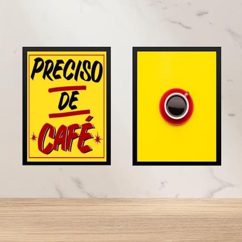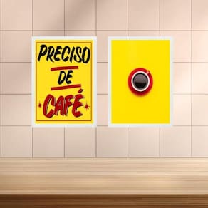 Kit 2 quadros para cozinha - preciso de café 24x18cm - com vidro Cor: moldura preta Informações do produto tire todas as suas dúvidas no descritivo abaixo: decoração para quarto, sala, cozinha, escritório, área gourmet e muito mais. Chega de paredes vazias medidas - cada peça tem 24x18cm a5 . Material do papel - papel fotográfico brilhante de altíssima resolução acabamento - todos os quadros são acompanhados de vidro para proteção da imagem. - moldura em madeira maciça na cor preta ou branca conforme produto escolhido e pendurador . - os quadros são embalados de forma segura com plástico bolha com camada dupla de acordo com o tamanho dos quadros. Garantia - garantia de 3 meses. Meu quadro chegou. Como posso fixá-lo Você precisa apenas de um martelo e um prego, pois os quadros já vão acompanhados de penduradores. Esta é a forma mais indicada. Como posso limpar meu quadro A limpeza é feita como um móvel comum da sua casa. Apenas um pano seco ou espanador são suficientes para tal