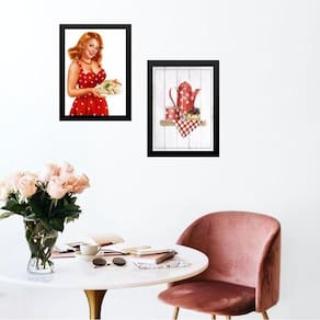 Kit 2 quadros cozinha retrô pin up vermelha 24x18cm - com vidro Moldura: madeira preta Informações do produto tire todas as suas dúvidas no descritivo abaixo: decoração para quarto, sala, cozinha, escritório, área gourmet e muito mais. Chega de paredes vazias medidas - cada peça tem 24x18cm a5 . Material do papel - papel fotográfico brilhante de altíssima resolução acabamento - todos os quadros são acompanhados de vidro para proteção da imagem. - moldura em madeira maciça na cor preta ou branca conforme produto escolhido e pendurador . - os quadros são embalados de forma segura com plástico bolha com camada dupla de acordo com o tamanho dos quadros. Garantia - garantia de 3 meses. Meu quadro chegou. Como posso fixá-lo Você precisa apenas de um martelo e um prego, pois os quadros já vão acompanhados de penduradores. Esta é a forma mais indicada. Como posso limpar meu quadro A limpeza é feita como um móvel comum da sua casa. Apenas um pano seco ou espanador são suficientes para tal