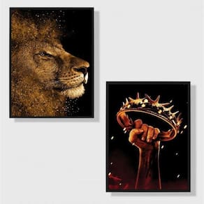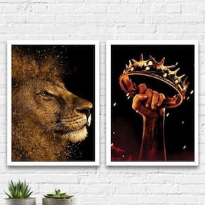 Com o Kit 2 Quadros Cristão Leão E Coroa, você terá uma decoração que transmite mensagens de fé e inspiração. O leão, símbolo de força e coragem, e a coroa, representando a realeza e o poder divino, trazem significado e profundidade para o ambiente.