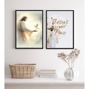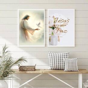 Kit 2 quadros cristãos jesus é a nossa paz 24x18cm Moldura: madeira branca Informações do produto tire todas as suas dúvidas no descritivo abaixo: decoração para quarto, sala, cozinha, escritório, área gourmet e muito mais. Chega de paredes vazias medidas - cada peça tem 24x18cm a5 . Material do papel - papel fotográfico brilhante de altíssima resolução acabamento - todos os quadros são acompanhados de uma película de acetato para proteção da imagem. - os quadros são embalados de forma segura com plástico bolha com camada dupla de acordo com o tamanho dos quadros. Garantia - garantia de 3 meses. Meu quadro chegou. Como posso fixá-lo Você precisa apenas de um martelo e um prego, pois os quadros já vão acompanhados de penduradores. Esta é a forma mais indicada. Caso prefira, você pode utilizar uma fita dupla face neste caso, sugerimos de alta qualidade para evitar que descole e seu quadro caia . Como posso limpar meu quadro A limpeza é feita como um móvel comum da sua casa. Apenas um pano seco ou espanador são suficientes para tal Ean: 7893975877257
