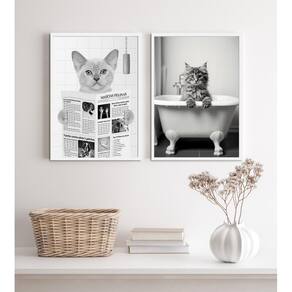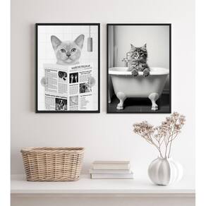 Kit 2 Quadros Decorar Banheiro- Gatos 45X34Cm - Com Vidro