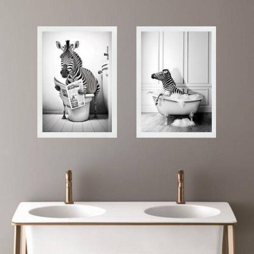 Kit 2 quadros para decorar banheiro - zebrinha 33x24cm - com vidro Moldura: madeira branca Informações do produto tire todas as suas dúvidas no descritivo abaixo: decoração para quarto, sala, cozinha, escritório, área gourmet e muito mais. Chega de paredes vazias medidas - cada peça tem 33x24cm a4 . Material do papel - papel fotográfico brilhante de altíssima resolução acabamento - todos os quadros são acompanhados de vidro para proteção da imagem. - moldura em madeira maciça na cor preta ou branca conforme produto escolhido e pendurador . - os quadros são embalados de forma segura com plástico bolha com camada dupla de acordo com o tamanho dos quadros. Garantia - garantia de 3 meses. Meu quadro chegou. Como posso fixá-lo Você precisa apenas de um martelo e um prego, pois os quadros já vão acompanhados de penduradores. Esta é a forma mais indicada. Como posso limpar meu quadro A limpeza é feita como um móvel comum da sua casa. Apenas um pano seco ou espanador são suficientes para tal