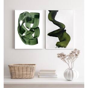 Kit 2 Quadros Decorativos Abstratos Sala Verde Escuro