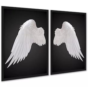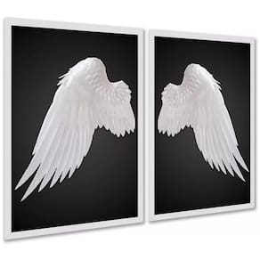 Kit 2 quadros decorativos asas de anjo 33x24cm - com vidro Cor: moldura branca Informações do produto tire todas as suas dúvidas no descritivo abaixo: decoração para quarto, sala, cozinha, escritório, área gourmet e muito mais. Chega de paredes vazias medidas - cada peça tem 33x24cm a4 . Material do papel - papel fotográfico brilhante de altíssima resolução acabamento - todos os quadros são acompanhados de vidro para proteção da imagem. - moldura em madeira maciça na cor preta ou branca conforme produto escolhido e pendurador . - os quadros são embalados de forma segura com plástico bolha com camada dupla de acordo com o tamanho dos quadros. - de 3 meses. Meu quadro chegou. Como posso fixá-lo Você precisa apenas de um martelo e um prego, pois os quadros já vão acompanhados de penduradores. Esta é a forma mais indicada. Como posso limpar meu quadro A limpeza é feita como um móvel comum da sua casa. Apenas um pano seco ou espanador são suficientes para tal
