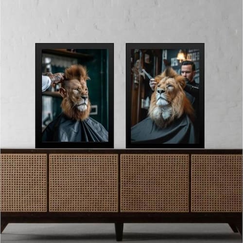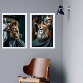 Kit 2 quadros decorativos barbearia - leão 33x24cm Cor: moldura preta Informações do produto tire todas as suas dúvidas no descritivo abaixo: decoração para quarto, sala, cozinha, escritório, área gourmet e muito mais. Chega de paredes vazias medidas - cada peça tem 33x24cm a4 . Material do papel - papel fotográfico brilhante de altíssima resolução acabamento - todos os quadros são acompanhados de uma película de acetato para proteção da imagem. - os quadros são embalados de forma segura com plástico bolha com camada dupla de acordo com o tamanho dos quadros. Garantia - garantia de 3 meses. Meu quadro chegou. Como posso fixá-lo Você precisa apenas de um martelo e um prego, pois os quadros já vão acompanhados de penduradores. Esta é a forma mais indicada. Caso prefira, você pode utilizar uma fita dupla face neste caso, sugerimos de alta qualidade para evitar que descole e seu quadro caia . Como posso limpar meu quadro A limpeza é feita como um móvel comum da sua casa. Apenas um pano seco ou espanador são suficientes para tal Ean: 7891234534293
