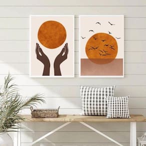 O Kit 2 Quadros Decorativos Arte Boho Sol é perfeito para dar um toque especial à decoração do seu quarto, sala, cozinha, escritório, área gourmet e muito mais. Chega de paredes vazias!