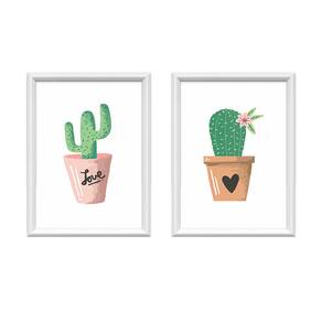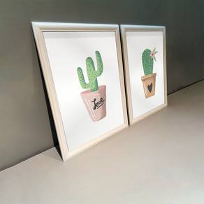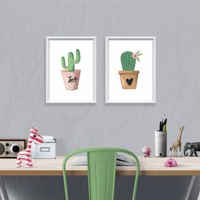 Kit 2 Quadros Decorativos Cactos Minimalista 34x44cm