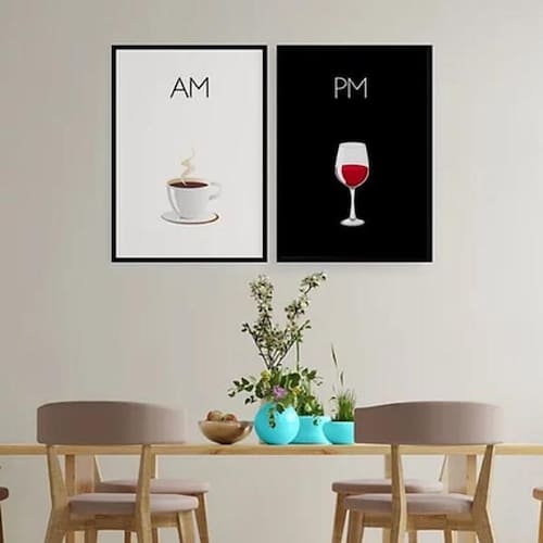 Kit 2 quadros decorativos café e vinho 33x24cm Moldura: madeira preta Informações do produto Decoração para quarto, sala, cozinha, escritório, área gourmet e muito mais. Chega de paredes vazias Medidas - cada peça tem 33x24cm a4 . Material do papel - papel fotográfico brilhante de altíssima resolução Acabamento - todos os quadros são acompanhados de uma película de acetato para proteção da imagem. - Os quadros são embalados de forma segura com plástico bolha com camada dupla de acordo com o tamanho dos quadros. - de 3 meses. Meu quadro chegou. Como posso fixá-lo Você precisa apenas de um martelo e um prego, pois os quadros já vão acompanhados de penduradores. Esta é a forma mais indicada. Caso prefira, você pode utilizar uma fita dupla face neste caso, sugerimos de alta qualidade para evitar que descole e seu quadro caia . Como posso limpar meu quadro A limpeza é feita como um móvel comum da sua casa. Apenas um pano seco ou espanador são suficientes para tal