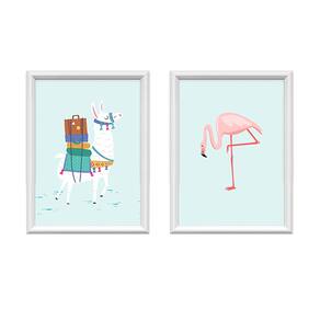 Kit 2 Quadros Decorativos Lhama e Flamingo 34x44cm