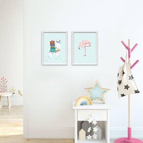 Kit 2 Quadros Decorativos Lhama e Flamingo 34x44cm